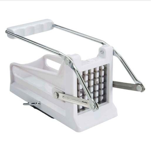 LEM Products French Fry Cutter - 2 stainless steel cutting plates for regular or thin fries. The suction base attaches to any smooth, flat surface. For best results, halve potatoes prior to cutting. Do not use with sweet potatoes. Handles large potatoesTwo stainless steel cutting plates (3/8 in- 64 hole and 1/2 in- 36 hole)Makes regular fries and shoe string friesSuction base attaches to smooth flat surfaceJulienne other vegetables like zucchiniFrame is hand wash onlyBlades and push plates are dishwasher safeBPA Free