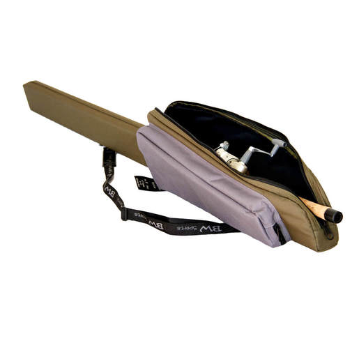 B W Sports 2pc 9ft Salmon/Steelhead Rod and Reel Combo Case - Designed to fit rods with guides up to 3in. BW Sports provides incredible value and quality in their rod case line. One additional zipper pocket, padded shoulder straps, and web handlesis provided on all rod cases. Holds one 2 piece 9 foot (or shorter) spinning, bait cast, or level wind, with reel 58" length *Rod and reel not included