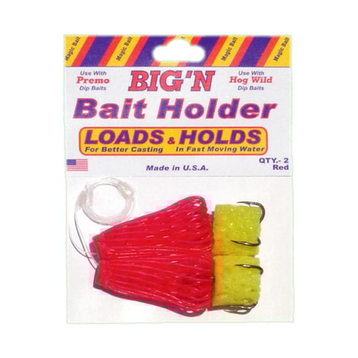 Magic Bait Big'N Bait Holder - Big'n Bait Holder are the best for loading with bait and holding the bait. Use with Hog Wild or Premo Super Sticky. Netting sets on top of size 2 treble sponge hook. Plastic mesh nettingEasy load, better hold
