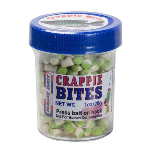 Magic Bait Crappie Bites - The Magic Bait Crappie Bites have the strongest crappie attractants of any crappie bait made. The dispersion technology starts to milk off attractants your first cast. Crappie Bites is made to work in all water temperatures and made to stay on the hook cast after cast. Strongest crappie attractants of any crappie bait madeMade to stay on the hook cast after castWorks in all water temperatures