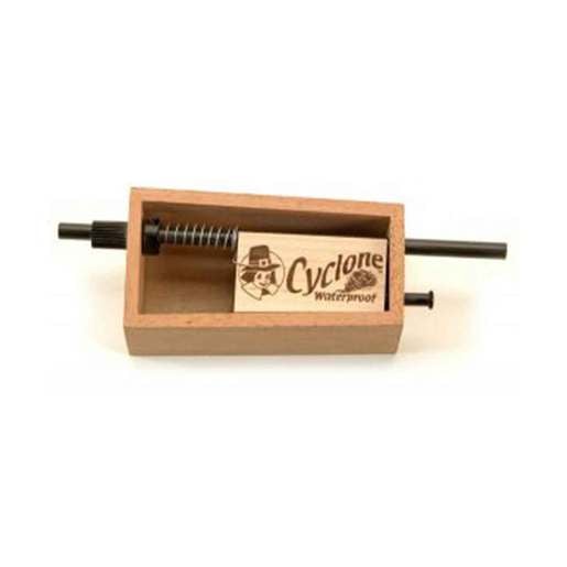 Quaker Boy Cyclone Waterproof Yelper Push Button Turkey Call - The easiest most productive call just got better. The Cyclone pushpin will operate under any hunting condition: rainy, windy, or dead-still. The waterproof, volume-adjustable, Cyclone has a mistake-free clucker button that never needs chalk or sanding. Hand crafted from Maple and Mahogany. Hand Tuned. Curved LidWaterproof