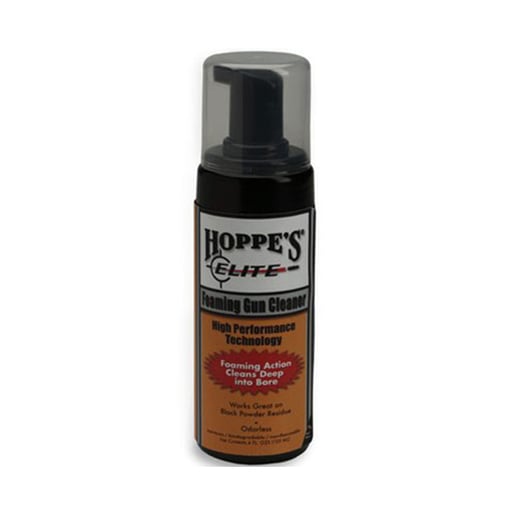 Hoppes Elite 4oz Foaming Gun Cleaner - Now get the excellent bore cleaning action of Hoppe's Elite in a foaming cleaner. Deep-cleaning spray-on foam penetrates deep into the gun, removing carbon and fouling better than ordinary cleaners. Odorless, nontoxic, non-flammable and biodegradable Ideal for black-powder shooters