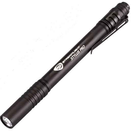 Streamlight Stylus Pro Pen Light Flashlight - Compact LED flashlights are constructed of durable machined aluminum. The Stylus Pro lights have a patented, proprietary Micro Optical Systems (MOS). The MOS has "Battery-Booster" electronics to provide a super-bright beam. They feature a push button tail cap "on-off" switch, and an LED in white or green that will last for years. The convenient size means it's easy to take these lights along with you, and the light weight makes carrying them a pleasure.