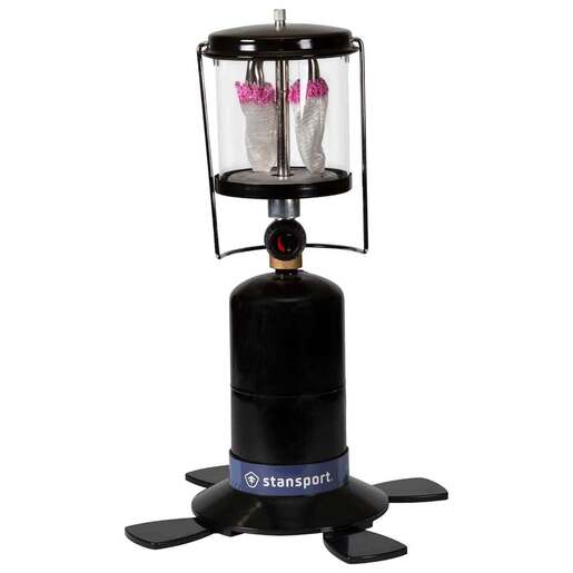 Stansport Double Mantle Propane Lantern - Light up the campsite with the Stansport Double Mantle Propane Lantern! This classic-style lantern uses a propane canister to fill the campsite with light. The double mantle design emits up to 810 Lumens. The lantern stays securely upright with a sturdy base and tip-resistant feet. Use a lighter or match to easily ignite the silk mantles and use the control knob to adjust to your desired light level. This powerful propane-powered lantern is an efficient alternative to battery-powered lanterns. The Stansport Double Mantle Propane Lantern evokes an earlier era of lighting that will make you feel like an explorer! Features On/Off control knob and built in pressure regulator Vented hood with durable baked on enamel finish Includes “Dura Base” with tip-resistant feet which holds 16.4 ounce disposable propane gas cylinder (not included) Steel carrying / hanging handle Heat resistant glass globe. (Use #167 replacement glass globe) Warning: All Propane Lanterns, Heaters and Stoves are for outdoor use only 6.5in x 6.5in x 17in