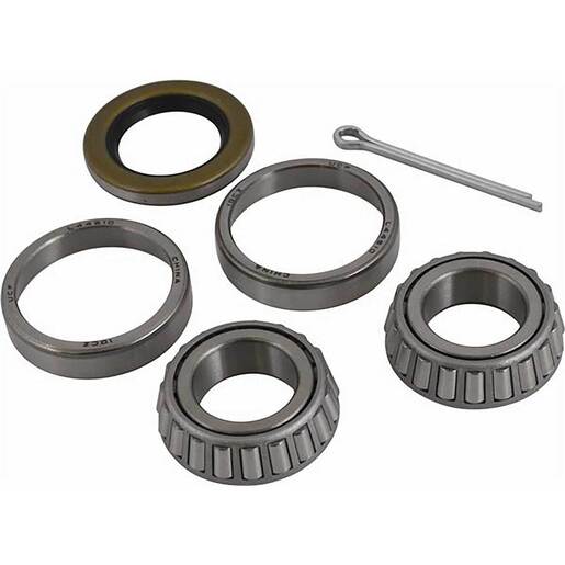 Attwood Wheel Bearing Kit Boat Trailer Accessory - Wheel bearing kits contain one grease seal, one cotter pin, two cones, and two cups. Sized according to outside spindle diameter. Grease Seal Inner Bearing Cup Inner Bearing Cone Hub Outer Bearing Cone Outer Bearing Cup Cotter Pin Spindle Nut Grease Cap HubMate Bearing Protector