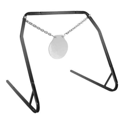 Caldwell Magnum Rifle Gong -Portability to and from the range is not problem with the Magnum Rifle Gong. The frame is constructed of steel tubing which requires no tools to assemble or disassemble, and entire system packs down for easy transportation. The complete system weighs only 25 pounds. Constructed of industry leading AR-550 steel tested to a Brinell hardness of 550, the Magnum Rifle Gong is designed to withstand bullet impacts without compromising the gong integrity. It is designed to be shot at a minimum distance of 100 yards, for maximum life expectancy impact velocities of 3,000 fps and below are recommended. AR-550 Steel construction for professional grade durabilityDesigned to withstand impacts of all high power rifles and handgunsComplete with freestanding frame, chains and 17.5" gongEntire system is collapsible for easy transportNO tools required for assembly or disassemblyFrame made from steel tubingOverall size 38 wide x 33 tallGong is 17.5" Wide x 9.25" High x.375" ThickWeighs approx. 25lbs.