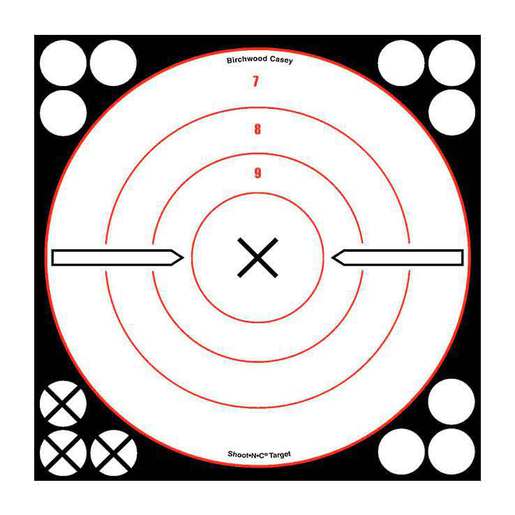 Birchwood Casey Shoot-N-C White and Black 12 inch Bulls Eye Target - This target is all about contrast. The white background makes the crosshairs of a riflescope pop. Even over long distances, the shooter can still have pin point accuracy. Every package includes five 12 x 12 inch targets. When the targets are impacted, a black halo forms around the impacted area. This makes seeing your impact area very easy to see. 12 x 12 inches5 targets per packageBlack halo with bullet impact120 Plasters included