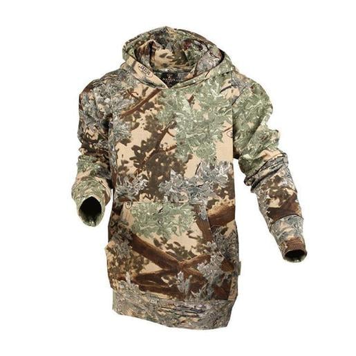 Kings Camo Youth Desert Shadow Classic Cotton Hunting Hoodie - Cotton/poly blend that is confortable with a 8.5 ounce material. Includes standard kangaroo pockets and camo cuff on sleeve and waist. The comfort of cotton and the look of Kings Camo for boys and girls. 60% cotton 40% polyester 8.5oz material Kangaroo pocket Cuff on sleeve and waist Style: KCK215