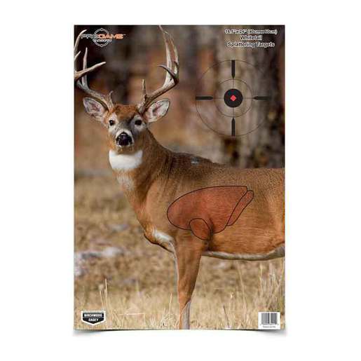 Birchwood Casey Pregame Whitetail Deer Target -These realistic full-color targets build your confidence in equipment and shooting skills! Bullet holes ‘splatter' on impact allowing you to immediately spot your shots. Shots on vital areas react in a highly-visible color. Size: 16.5in x 24in 3 Targets Per Pack Different colored reactive zones within the target Full-color graphic images for the most realistic shooting experience Great for use with all firearms and calibers
