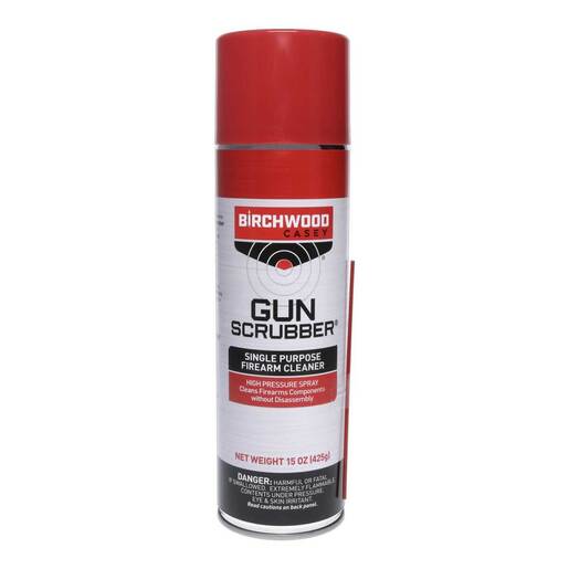 Birchwood Casey Gun Scrubber Firearm Cleaner - 15 oz - Gun Scrubber Cleaner cleans and evaporates fast.Excellent for automatics, bolts, lever and slide actions, as well as shotguns, air rifles, and muzzleloaders.This product may harm plastic, wood, laminates, composites, rubber grips or any other material used in the construction of today's firearms. Always test in an inconspicuous area to ensure product will not harm surfaces. Eliminates jams and prevents gun failureExtension tube for hard-to-reach areasLeaves no residueHigh-pressure jet action15 oz aerosol can