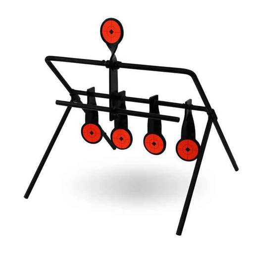 Birchwood Casey World of Targets Gallery Resetting Target - Shoot, reset, shoot again. No problem! Experience hours of shooting fun with your .22 rimfire or airgun! Airgun version requires a moderately powerful airgun (approximately 500 FPS or faster) with lead pellets only to operate effectively.