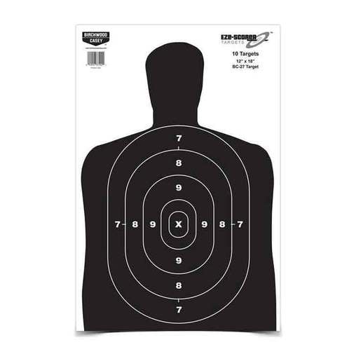 Birchwood Casey Eze Scorer BC27 Paper Target -Handgun shooting has never been easier. Now practice or train on multiple designs. Based on the classic B-27 targets, these 12" x 18" formats work great at practical training distances. Size: 12in x 18in10 Targets Per PackPrinted on brilliant white paperGreat for indoor or outdoor ranges