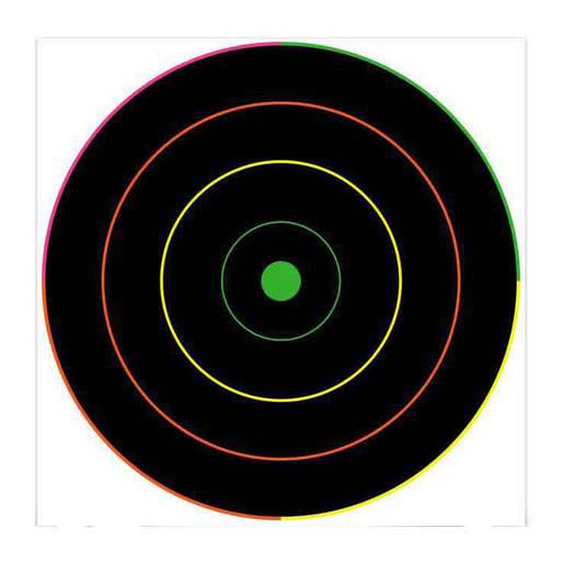 Birchwood Casey Dirty Bird Multi Color Bulls Eye Target -These targets offer the great features of the Dirty Bird Multi-Color, and come with an aiming point for open or scoped sights. There's even a tie-breaking ring in the center! Size: 12in x 12in10 Targets Per PackEach target ring reacts in a different highly-visible colorGreat for indoor or outdoor useHeavy tagboard construction