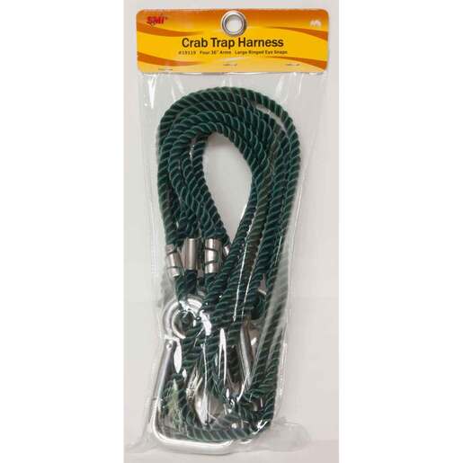 SMI 4-Arm Crab And Shrimp Trap Harness - The SMI 4-Arm Crab Trap Harness keeps your trap secure and easily retrievable, without the wear and tear that comes from tying your rope directly to the pot. For storage, just detach and keep with your line. Heavy-duty clips ensure many seasons of use.