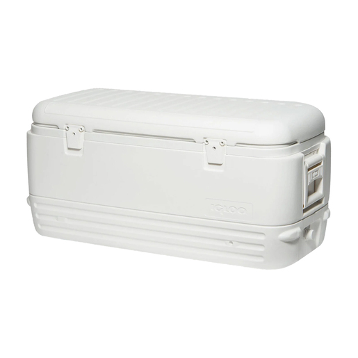 Igloo Polar 120 Quart Hard Cooler - The reinforced swing up handles stay down and out of the way when not in use while staying comfortable during transport. A tie down loop has been added to each side of the cooler allowing you to better secure your load during travel. Dual snap fit lid latches keep everything closed. Polar will keep ice for five days, even at temperatures up to 90 degrees Fahrenheit. This is happens by Ultratherm insulated body and UV inhibitors in lid to guard against sun damage. Size: 38.31in x 17.38in x 17.75in Weight: 18.2lbs Capacity: 120 Quarts 12 oz Can Capacity: 188 Cans Fits 2 Liter Bottles Upright Ultratherm Insulation in body and lid holds ice up to 5 days Reinforced swing-up handles with tie-down loop feature for versatile carrying and loading Dual snap-fit latches keep contents secure during transportation Threaded drain plug for optional hose hook up for easy draining BPA Free