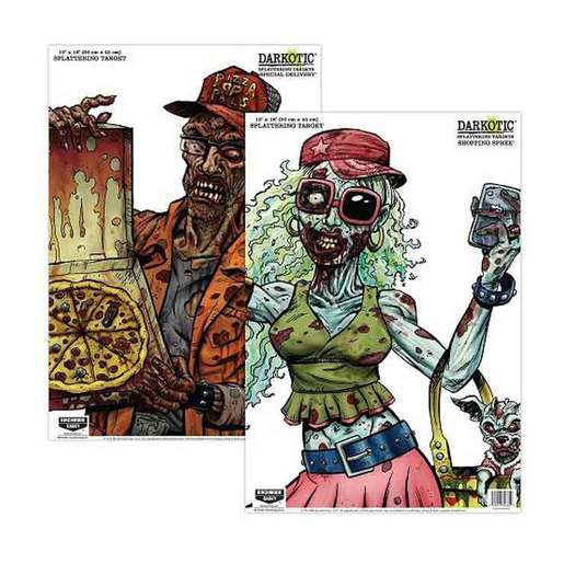 Birchwood Casey Darkotic Special Delivery/Shopping Spree Targets -Each hit on our splattering targets explodes in a white halo or neon green around the bullet hole, so you instantly know where you hit the target. The most trusted source for your shooting suppliesTested for quality and durabilityMade using the highest quality materials and componentsThese targets 'splatter' with a halo when shotGreat for use with all firearms and calibersConvenient combination pack; 8 total targets (4 of each)Huge 12 x 18 splattering target