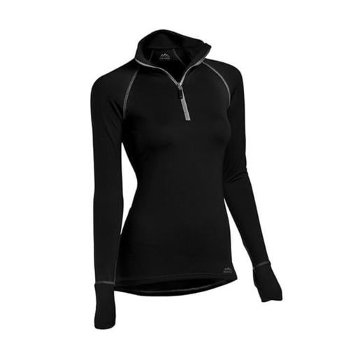 ColdPruf Women's Quest Performance Mock Long Sleeve Base Layer Shirt - Wicks and aids in moisture evaporation and brushed inside for warmth and comfort. So versatile that this Mock can be worn as a base layer, casual, or active wear. SILVADUR Intelligent Freshness Controls odor and inhibits bacterial growth on fabric 85% Microfiber Polyester 15% Spandex Extended body and sleeves for ultimate athletic fit Raglan Sleeve Thumbhole Cuffs Drop tail Tagless and Flat Seams offer added comfort Style: 52Z