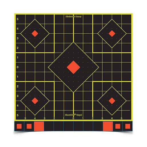 Birchwood Casey Shoot-N-C Sight In Targets - Five targets are on each sheet. Use the center target for sighting-in and the four smaller targets for testing results of various ballistic loads or for confirmation of sight-in groups. Convenient 1in numbered grid lines simplify scope adjustments. These targets are self-adhesive and come with 5 targets and 60 pasters per order. Bullet holes are revealed with bright chartreuse rings Self-adhesive backing makes targets easy to put up Convenient 1" numbered grid lines simplify scope adjustments Great for indoor or outdoor use and low-light conditions