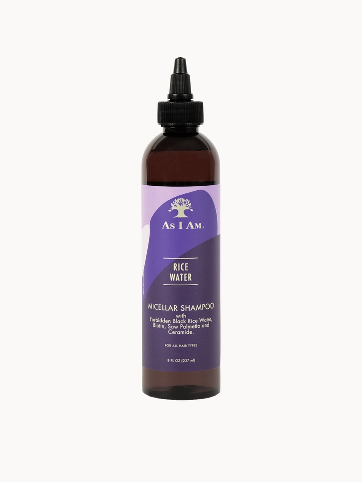 Suitable for all hair types, the Rice Water Micellar Shampoo by As I Am is a hydrating formula that leaves the hair feeling stronger. The shampoo cleanses the strands and nourishes the scalp in order to promote optimal conditions for healthy hair growth.Combining sub-micron technology with biotin, inositol and saw palmetto, the detangling formula encourages a thicker, more voluminous appearance, while black rice protects against environmental aggressors. The refreshing shampoo is ideal for protective styles and locs.Vegan.