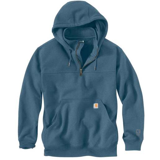 Carhartt Men's Rain Defender Loose Fit Heavyweight Work Hoodie - Don't let a little wet weather slow you down. This men's heavyweight hoodie gives you the familiar comfort of a favorite sweatshirt with the added benefit of keeping you dry in light rain. 75% cotton/25% polyester Rain Defender durable water repellent (DWR) Three-piece jersey-lined hood with drawcord Mock neck collar with antique-finish brass zipper Rib-knit cuffs and waist help keep weather out Front handwarmer pocket with a hidden security pocket inside Carhartt patch sewn on pocket Style: 100617
