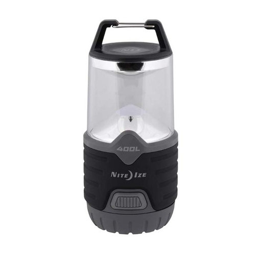 Nite Ize Radiant 400 Lantern - The Radiant 400 Lantern has three adjustable levels of intensity maxing out at 400 Lumens, to provide the best lighting solution in any situation, and features a first-of-its kind carabiner-style handle. The fully featured Radiant 400 Lantern illuminates any outdoor adventure or night spent at home during a power outage. At 400 Lumens, it provides beacon-like brightness when needed, and its durable design showcases a first-of-its-kind carabiner handle that allows it to easily clip, carry, or hang. The lantern has three adjustable levels to provide intensely bright, or softer lighting providing the best lighting solution in any situation. It also comes with a protective carrying bag that doubles as a light diffuser. Powered by three D-Cell batteries, this lantern can run for nearly 800 hours in low mode before needing to swap out for new ones. 400 Lumens Multi-mode switch for three LED modes: high, medium, low Weather resistant Impact resistant (drop proof to 1 meter) Intelligent switch: push to cycle through modes, after 5 seconds, push once to turn off Optical diffuser for uniform beam pattern Integrated carabiner handle to clip, carry, or hang Included dual-purpose carry and light-diffusing bag Powered by three D-Cell Batteries (not included) Dimensions: 3.86in Dia. x 7.92in Weight: 11.6oz