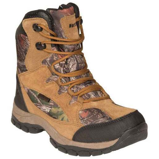Northside Boys' Renegade Jr 400g Thermolite Insulated Waterproof Hunting Boots - The Renegade offers support and protection so you can keep your eye on the prize. Suede upper features breathable 600 denier nylon inserts with exclusive Daybreak camo print, protective toe and heel caps and a fully insulated lining This boot offers a waterproof, seam sealed construction to keep little feet dry Gusseted tongue and padded collar keep debris out Removable, washable, breathable insole and compression molded EVA midsole ensure serious cushioning for all day comfort Premier 400 gram Thinsulate insulation keeps kids feet warm Quick lace up closure allows for easy and secure adjustments Heel pull strap makes it easy to get on and off Durable TPR traction outsole ensures exceptional traction and shock absorption as well as good abrasion resistance in wet, snowy or icy conditions Style: 913970B