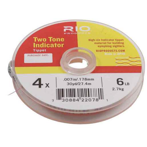 RIO 2-Tone Indicator Tippet – This opaque RIO 2-Tone Indicator Tippet has 8” sections of fluorescent pink and fluorescent chartreuse color changing tippet with highly defined hard color changes. These color breaks create maximum contrast to allow anglers to get visual cues when tight line nymphing. There are 30 yards on each spool. Colors create a visual cue when tight line nymphingOpaque 2-tone sections of fluorescent pink and chartreuseMPN: 6-220