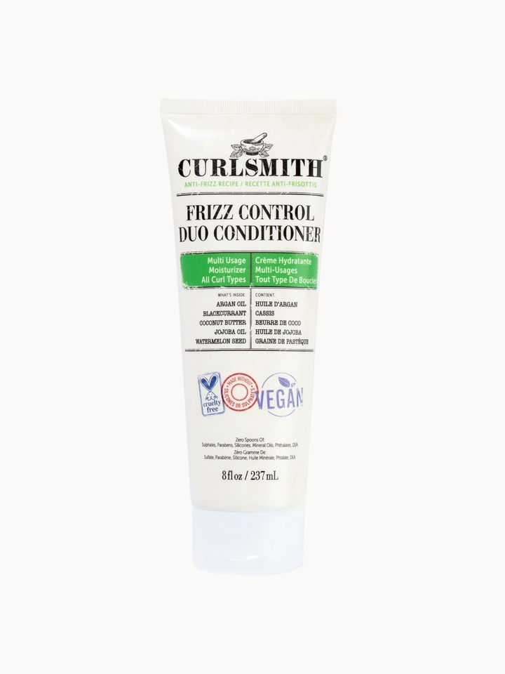Stock up on your haircare essentials with the Curlsmith Frizz Control Conditioner Duo.This moisture-replenishing formula creates a lightweight film to help seal and smooth each strand, working to effortlessly detangle and intensely nourish the hair. Hair is left with lasting smoothness and shine.