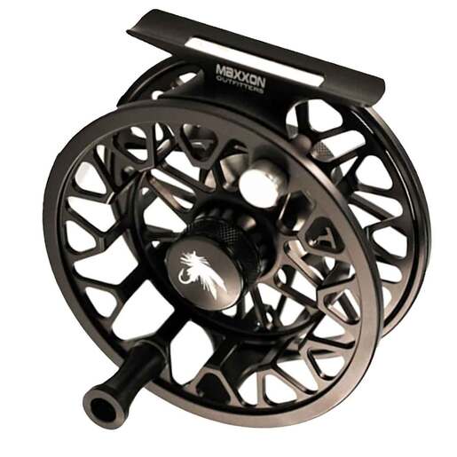 Maxxon Outfitters Max Fly Fishing Reel - Made to balance beautifully with lighter modern-day fly rods, this state of the art machined process also makes this reel highly superior to any die-cast process know to science. Fully CNC-Machined with extremely tight tolerances, the MAX is not only slick looking with its skeletonized, lightweight aluminum frame & large arbor spool design, it is also highly functional. Some other lightweight frame designs allow your fly lines to get pulled into your spool, ruining expensive fly lines, but not the MAX. We removed only what is needed from the spools to keep them durable yet light in the hand, while maintaining enough support for the fly line, extending its life. Ultra smooth start-up, and the ability to spin like a dream, are just a few more reasons to add this reel to your line-up. The MAX also features a hard-anodized, matte black finish, with a powerful center disc-drag system that is sure to keep you in control. Available in four sizes to choose from, the MAX was built to fit every one of your fishing adventures. All this and much more, and always backed by Maxxon's Lifetime Warranty. Fully CNC-Machined 6061-T6 Aluminum Reel 3-Bearing Support System Large Arbor Spool for Fast Line Pick-Up Powerful Center Disc-Drag Stealthy Matte Black Hard Anodized Finish Easily Converts for Left or Right-Hand Retrieve Neoprene Travel Pouch Included Lifetime Warranty