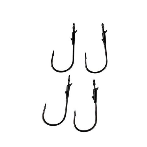 VMC Heavy Duty Flippin' Hook - The VMC Heavy Duty Flippin' Hook is strong enough for braided or heavy monofilament lines in thick cover. These hooks feature a double spike baitholder that securely keeps bait in place and features a resin closed eye to eliminate line slip through. Designed with space above the baitholder to allow room for a snell knot, they can also be tied with standard knotting. Resin Closed EyeDouble Spikes BaitholderSnelled and Standard RigsMPN: HDFL