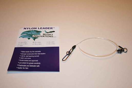 Musky Innovations Nylon Mono Leader - Increased pressure on waters that hold leader-shy trophy fish, demand a leader that will blend into its environment while withstanding the stress of high tech tackle. Musky Innovations Mono Nylon Leaders fit these demands. Loony leaders have very low stretch, but are able to handle the trophy fish when it makes its once-in-a-lifetime strike. Nylon produces more shock absorption than regular steel leaders. You're able to set your hooks hard, wile reducing the chances of breaking your line or even your rod. this is due to the slight "give" that steel is prone to. Yes, our leader is thicker than regular steel leaders, but when used with high tech ultra-thin braided lines, deep diving crank baits will retain the depth needed to reach the large fish. Nylon's thickness helps protect the hooked fish while doing battle since it will not cut them as steel is prone to do. Make leader shy fish catchable Stronger construction than steel leaders 150lb ball bearing swivels Will not kink Guide tested and approved Low stretch for greater sensativity Freshwater and saltwater safe Safer for fish