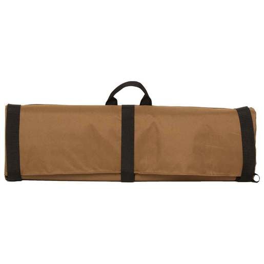 Down Range Layout Shooting Mat - Comfortable and functional padded mat for shooting out on the range. 600D poly fabric construction with weatherproof vinyl coating Compact, roll up design Dual side accessory pouches 3 bipod secure strips 1/4″ closed cell foam padding Zippered knee section allows for additional padding