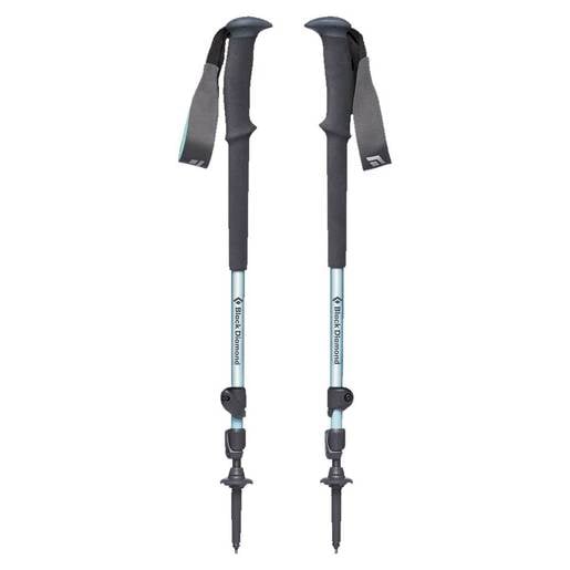 Black Diamond Women's Trail Trekking Poles - Alpine Lake - Balancing comfort, features and reliability, the Trail features an updated EVA foam grip for added comfort and our fusion comfort strap for added security and better handling. With both interchangeable tips and baskets, the Trail is an amazingly versatile pole for any terrain or season. 7075 Aluminum shafts Soft-touch ergonomic grip top with EVA foam grip and grip extension Fusion comfort strap for premium support FlickLock adjustability Interchangeable tech tip compatible with carbide tech tips included 4 season flex tips with trekking baskets (snow basket compatible)