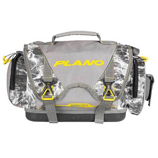 Plano B-Series 3600 Soft Sided Tackle Bag - This Soft sided tackle bag features an impact-resistant waterproof base that will keep all your valuables safe and secure. This tackle bag is also designed with rip-stop fabric panels in camo and a deep open interior. 5 exterior pockets 15 x 10 x 8 Padded removable shoulder strap