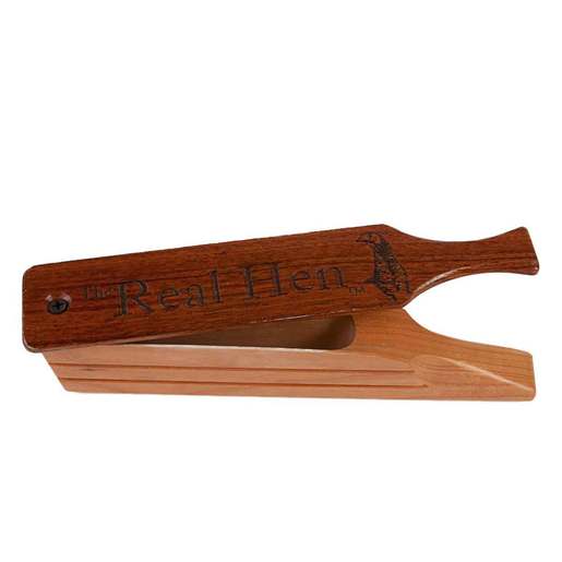 Woodhaven Calls The Cherry Real Hen Turkey Box Call - A higher pitched call than the walnut Real Hen, the cherry Real Hen features a one piece cherry trough style box with a matched Brazilian cherry lid. The cherry Real Hen sends out the most realistic two tone raspy yelps. Great call for clucks, cutts, and cackles. Each Real Hen comes chalked and ready to call in the ol' gobbler. Box Call Cherry Call Higher Pitch than Walnut Raspy Yelps