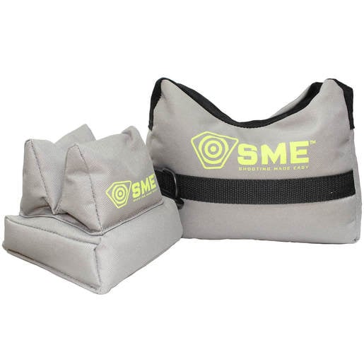 SME 2 Piece Filled Shooting Bags/Rests - These bags do double time as both shootin bags and rests. Non-Slip Bottom Inert Poly Bead Fill Suede Leather Topper To Protect Stock Front And Rear Bags Included