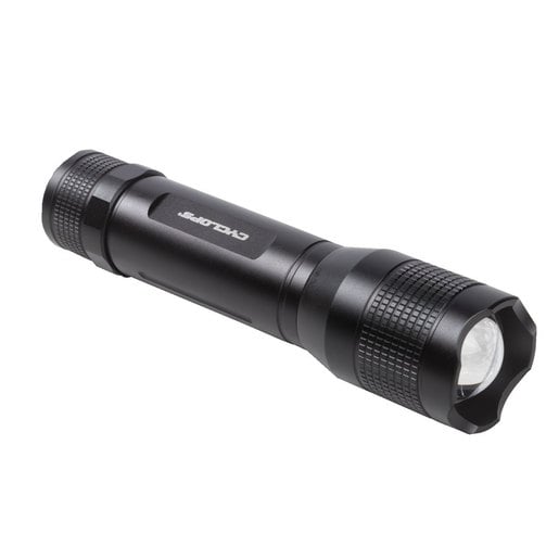 Cyclops CYC-TF800 Mid Size Flashlight - 150 lumen LED flashlight features a powerful CREE XTE 5 watt LED bulb, durable anodized aluminum alloy housing and a weather resistant rating of IPX4. Powered by 1 AA battery with a burn time of 3 hours.