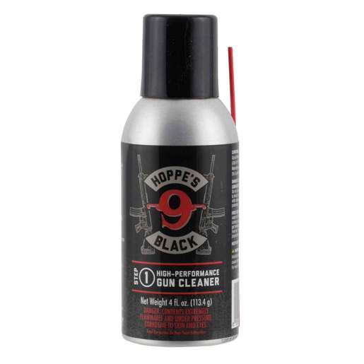 Hoppe's Black Aerosol Cleaner - Hoppe's Black High-Performance Gun Cleaner Aerosol delivers an advanced cleaning formula engineered to remove high carbon levels with the touch of a button. The included extension allows for gun cleaner to be placed precisely where it's needed. Safe to use on any firearm bore