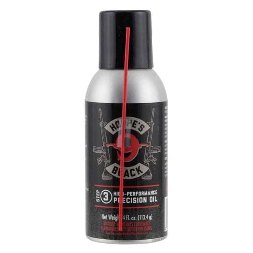 Hoppe's Black Precision Oil 4 oz. Aerosol - Hoppe's Black Precision Oil is formulated to manage the high heat temperature conditions created in high round count shooting situations. Boasts extreme temperature range from -65°F to 540°F