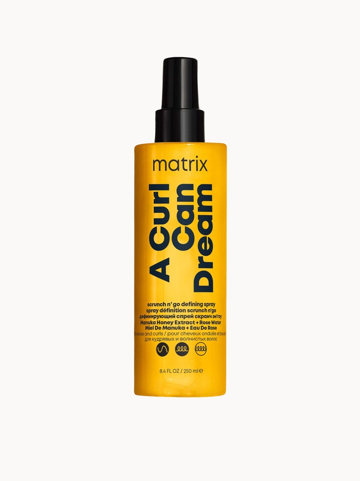 Experience up to 48 hours of definition with the Matrix A Curl Can Dream Scrunch ‘N’ Go Defining Spray. The hydrating styling mist works to shape the hair’s natural pattern and protect against frizz. Lightweight and quick-absorbing, the formula utilises manuka honey, a nutrient-rich ingredient renowned for its humectant properties, to help lock moisture into the strands. Supported by rose water, the multi-purpose spray noticeably enhances the bounce and movement of your hair, while providing heat protection up to 230°C. Complete with a serene floral amber fragrance.