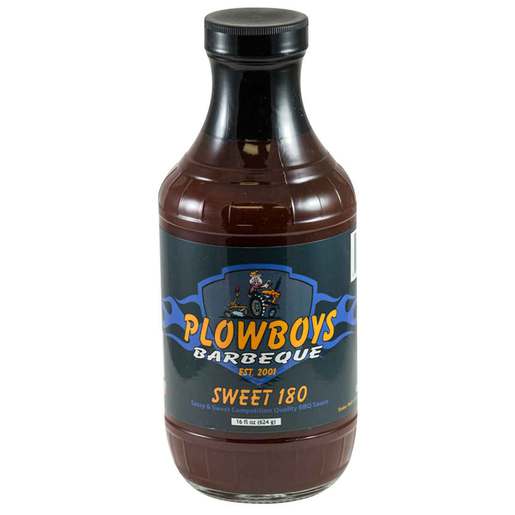 Plowboys BBQ Sweet 180 Sauce - Plowboys BBQ Sweet 180 BBQ Sauce is the sweet and mild cousin to Plowboys BBQ En Fuego ("On Fire") BBQ sauce. This sauce has complex flavors and great glazing properties. Pair this with Plowboys Yardbird rub for a meal full of Plowboys flavor!
