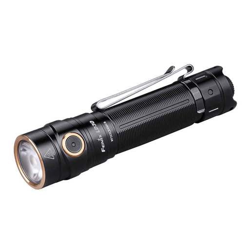 Fenix LD30 Compact Flashlight - The Fenix LD30 is an extremely powerful compact flashlight that can blast a maximum 1600 lumens, 673 feet (205 meters). At only 4.3” long, the LD30 is the perfect size everyday carry EDC flashlight. Quickly activate the flashlight with its tactical tail switch and then cycle through the lighting modes with the side switch. The LD30 flashlight is powered by one 18650 li-ion battery or two CR123As. Other features include a two-position body clip, battery level indicator, and it is IP68 rated waterproof/dustproof. Includes: LD30 Flashlight, Lanyard, Holster, Spare O-ring, User Manual, Warranty Card Compatible batteries: One 18650 rechargeable battery or two CR123A batteries Two position body clip Battery level indicator Tail Switch & Side Switch Ultra Thin Optical Lens - Spill beam angle of 193°