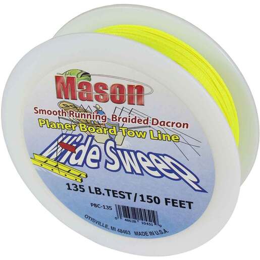 Mason Tackle Wide Sweep Planer Board Tow Line - "WIDE SWEEP" Planer Board Tow Line. Made of high visibility fluorescent braided dacron line. This line is low stretch, abrasion resistant and resists water absorption!