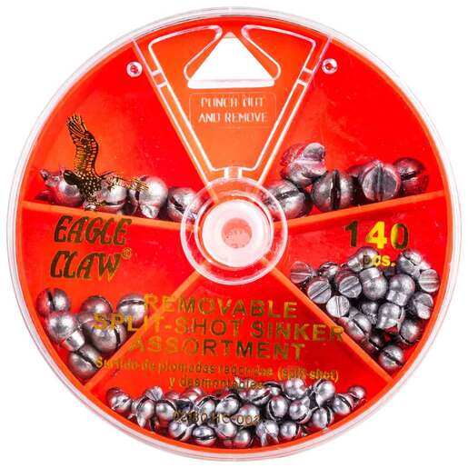 Eagle Claw Removable Split Shot Sinker Assortment This Dial Assortment pack contains a variety of different split shot weights and sizes. Saltwater or Freshwater