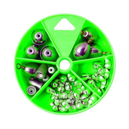 Eagle Claw Multi Style Lead Alternative Sinker Assortment - The NLDPASST Multi Style Lead Alternative Sinker Assortment is an environmentally friendly alternative to lead weights. With more areas banning lead weights, the use of lead alternatives is becoming more popular every day. Included in the dial pack are 47 sinkers made of tin or steel. Incuded is a selection of tin removable split shot sinkers and bass casting, worm and egg sinkers made of steel.
