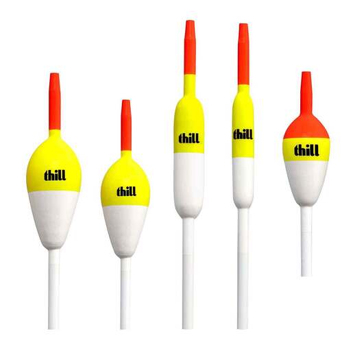 Thill America's Favorite Float Assorted Slip Bobbers - A premium balsa float for all species. This is a 5-piece slip assortment. Sizes are 1/2in Pencil, 3/8in Pencil, 3/4in Oval, 7/8in Oval, and 1in Oval.