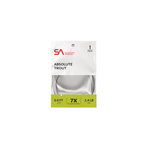 Scientific Anglers Absolute Trout Freshwater Tapered Leader - 9ft, 1pk Absolute leaders are made with proprietary copolymer blends that are designed to drastically reduce water absorption while maintaining an optimal suppleness for high knot strength. Absolute nylon leaders and tippet have a 29% higher wet knot strength compared to our previous material and up to 40% higher wet knot strength when compared to our competitors. Our new paper-based leader packaging is now 100% recyclable. All materials, inks, and window are fully biodegradable to protect our streams and reduce our environmental footprint. Please don't litter. Tapers specifically designed for Trout fishing Heavy butt diameters for powerful accurate deliveries Supple material for drag free drifts Lengths- 9ft, 0-7X Water Type: Freshwater Material: Nylon Length: 9ft, Fishing Type: Dries, Indicators, Nymphs, Big Dries, General, Presentation, Stillwater Species: Trout