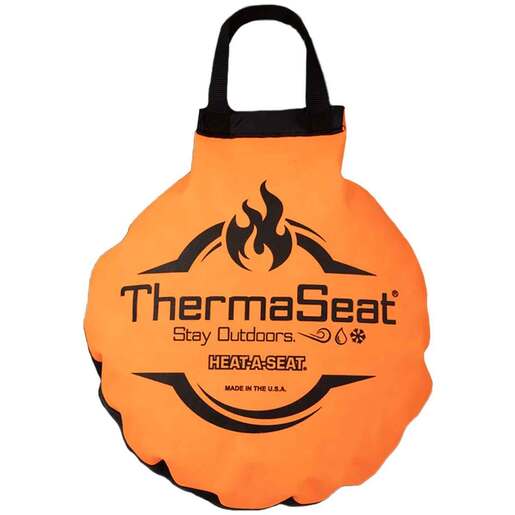 Thermaseat Heat-A-Seat Cushion - Blaze Orange/Realtree - The Heat-A-Seat is a legendary for keeping people warm with no gimmicks, chemicals, or batteries. It's perfect to bring along on any excursion that requires added heat and comfort. Hunters can trust that the InsulSoft foam blend inside the seat will stay quiet, even in the coldest temperatures. Lightweight And Waterproof Standard Carrying Handle Included Blaze Orange On One Side And Realtree On the Other