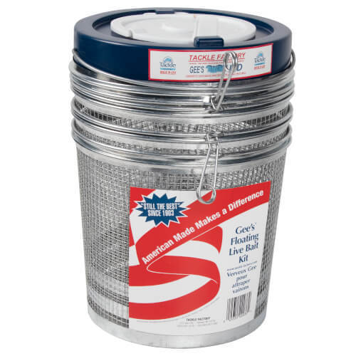 Tackle Factory Gee's Floating Bait Storage Minnow Trap Kit - The one kit for all of your live bait requirements. The Tackle Factory Gee's Floating Bait Storage Minnow Trap Kit provides for capture, transport, and storage of bait on site at your fishing location. In one kit, you get the Galvanized Minnow Trap, the Galvanized Bait Keeper, The Floating Lid, and the Dip Net for easy removal of bait. Minnow Trap - 16.5in Dip Net - Hoop Size: 3in x4.5in Handle Length: 6in Material: Ace Nylon Mesh
