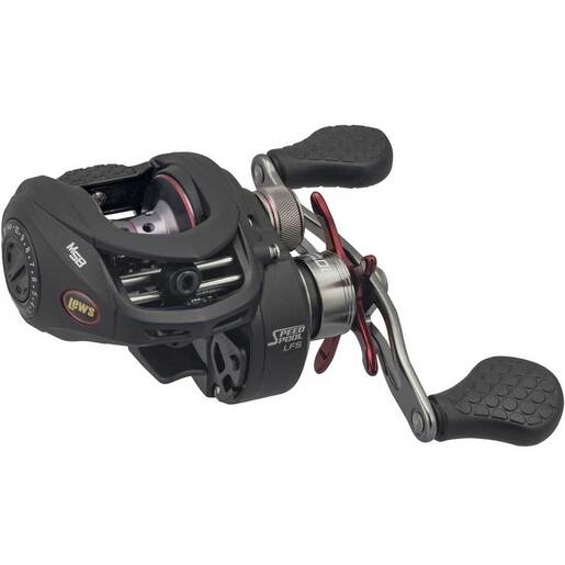 Lew's Tournament MP Speed Spool LFS Series Casting Reel - Touting the P2 Super Pinion, Lew's Tournament MP Speed Spool LFS Series Baitcasting Reel has precise alignment and stability in the pinion gear through a bearing support system, resulting in smoother operation and extended gear life. Match that up with a premium 10-bearing system and externally adjustable Multi-Setting Brake (MSB) dual cast control system, and you have one smooth reel. A bowed, lightweight 95mm aluminum handle with Lew’s Combat Grip paddle knobs, Combat Grip thumb bar, and 20lbs of drag power, it won’t shy away from heavy cover and big fish. One-piece, aluminum frame with graphite sideplates Drilled and forged, double anodized aluminum U style 34MM spool Hard anodized aluminum Speed Gears, cut on precision Hamai CNC gear hobbing machines P2 Super Pinion bearing supported pinion gear provides precise alignment and solid stability, resulting in smoother operation and extended gear life Premium 10-bearing system with stainless steel double shielded bearings and Zero Reverse one-way clutch Externally-adjustable Multi-Setting Brake (MSB) dual cast control system utilizing both an external click-dial for setting the magnetic brake, plus 4 individually disengaging, disk-mounted internal brake shoes that operate on centrifugal force Double anodized aluminum spool tension adjustment & audible click Rugged carbon fiber drag system provides up to 20lbs. of drag power Audible click, bowed, double anodized aluminum star drag Bowed, lightweight, 95MM aluminum reel handle with Lew’s Combat Grip paddle knobs Combat Grip thumb bar Speed Keeper hook keeper